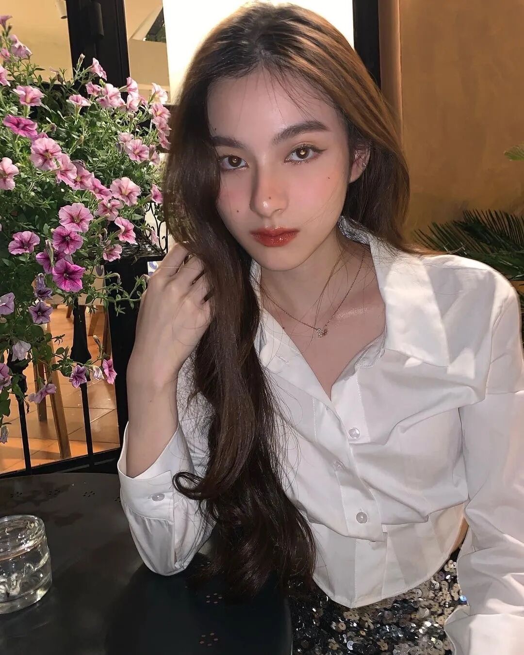 长着一张极具风情的泰式混血脸,软组织饱满,面部折叠度高,每根头发丝都在透露出高贵而又典雅、自信不失果敢的豪门千金气质。