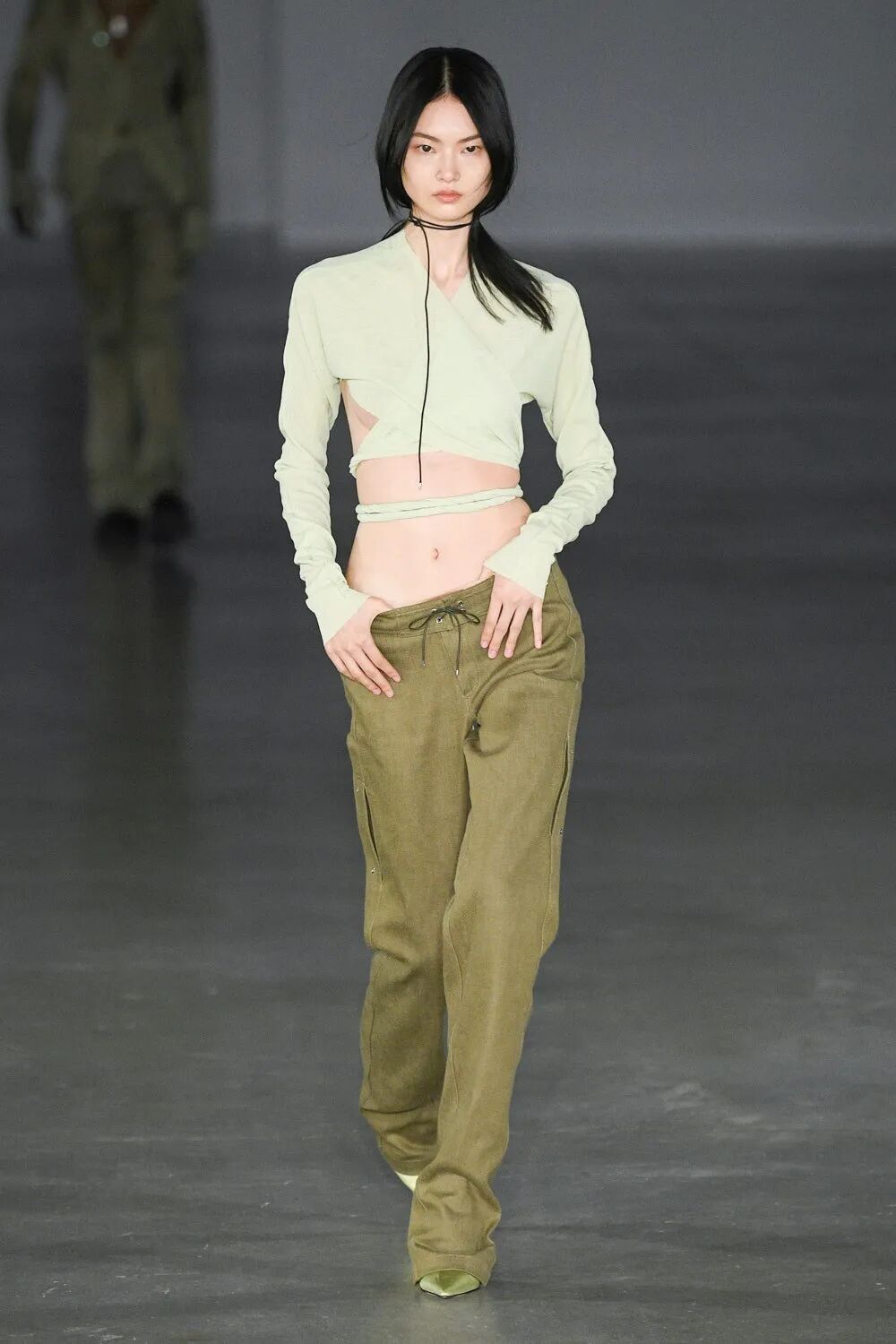 crop top真的很适合她,适当露肤炫腹能很大程度上发挥超模的身材优势。