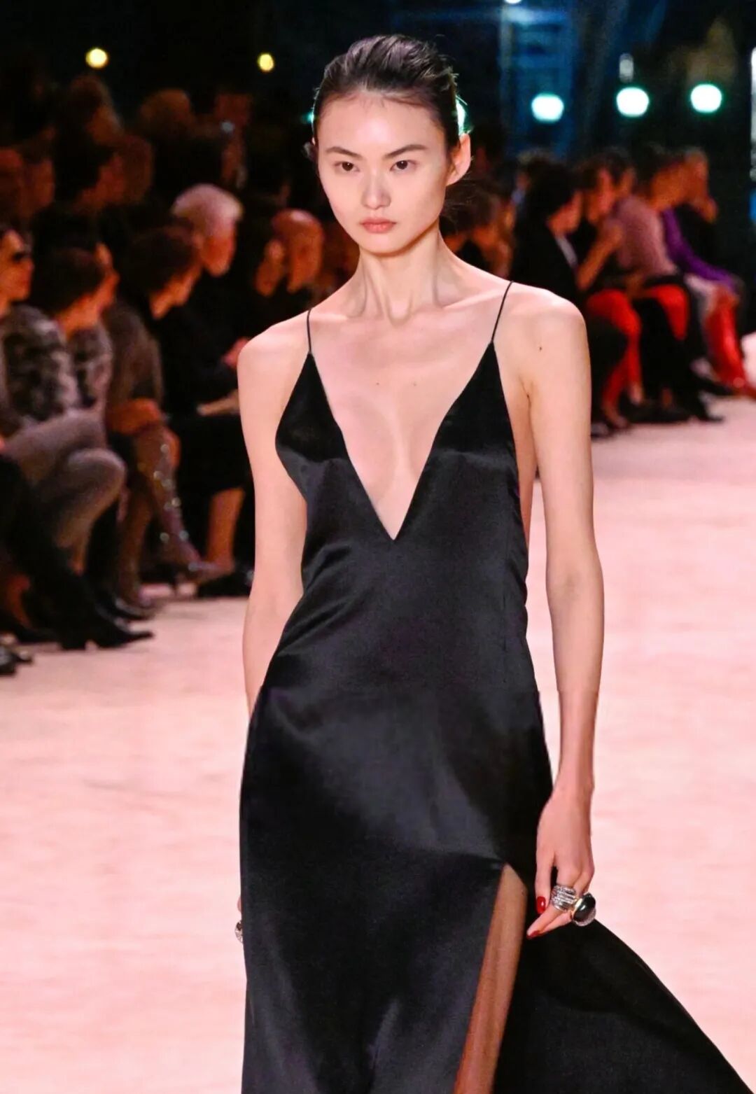 首登SAINT LAURENT秀场,聪妹用一条真丝长裙惊艳四座。