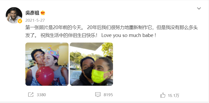 微博大方送上对老婆的甜蜜祝福,不畏虐狗,