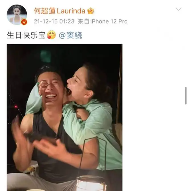 何超莲生日,窦骁亲吻她的脸颊,高调秀恩爱,