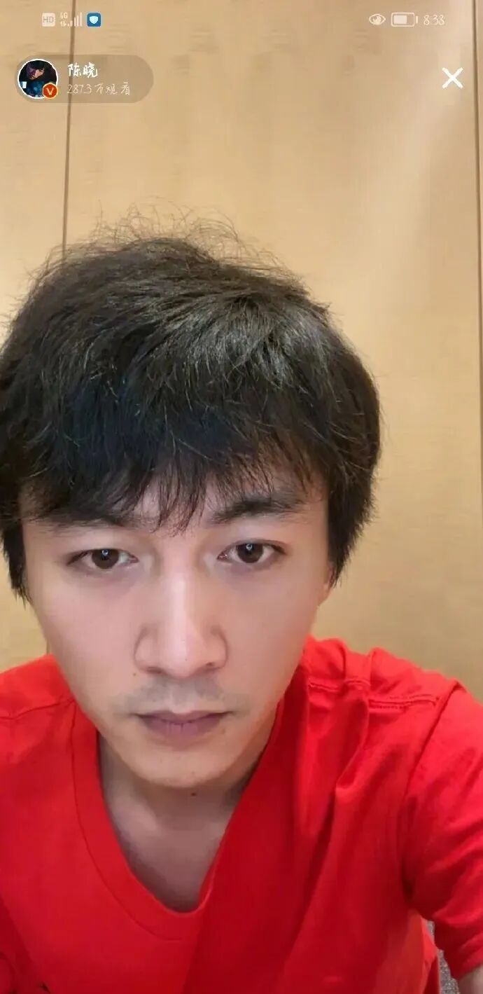 同样是隔离中的陈晓,直播首秀素颜上阵,无美颜怼脸拍,状态也是非常真实。