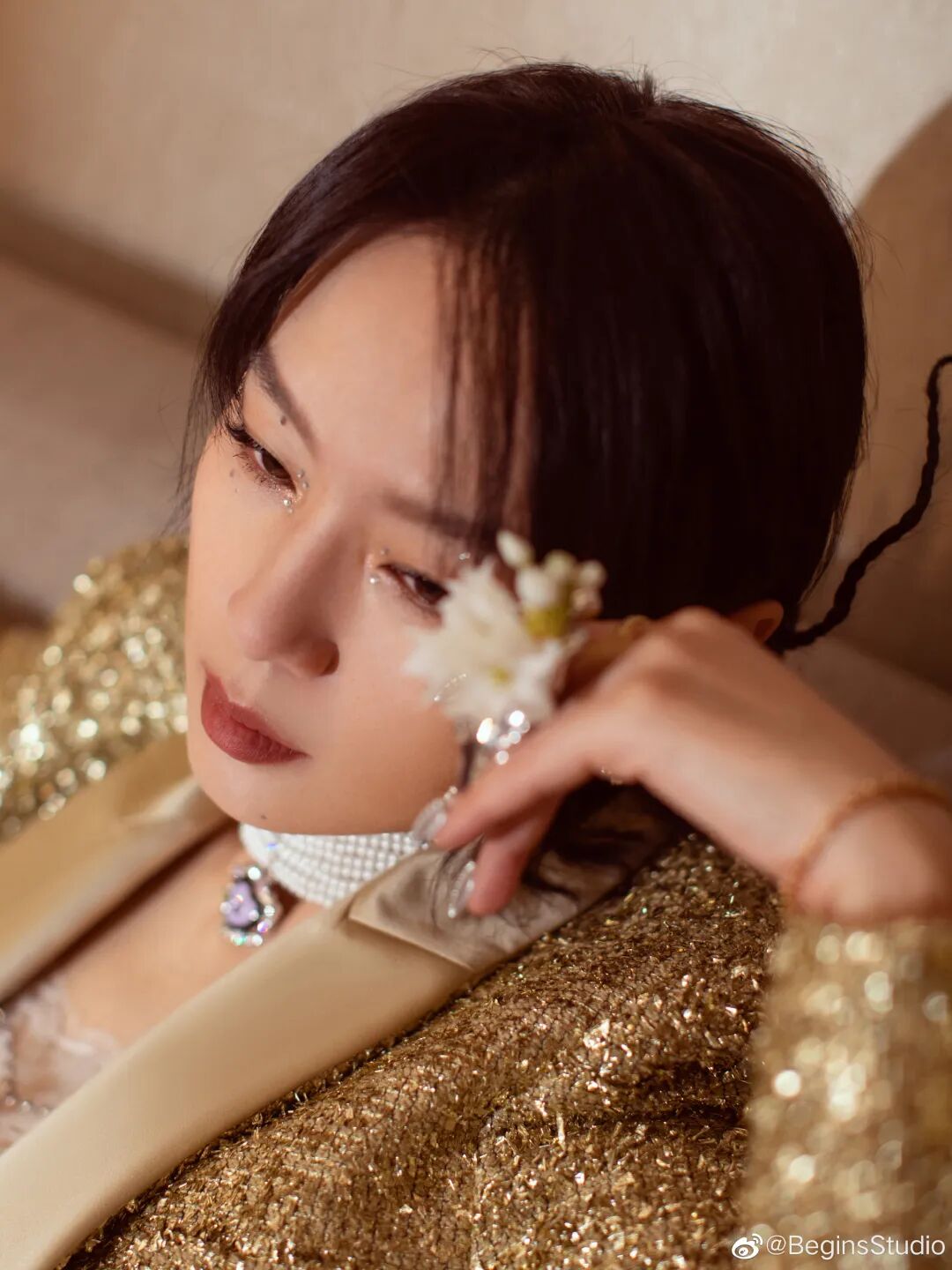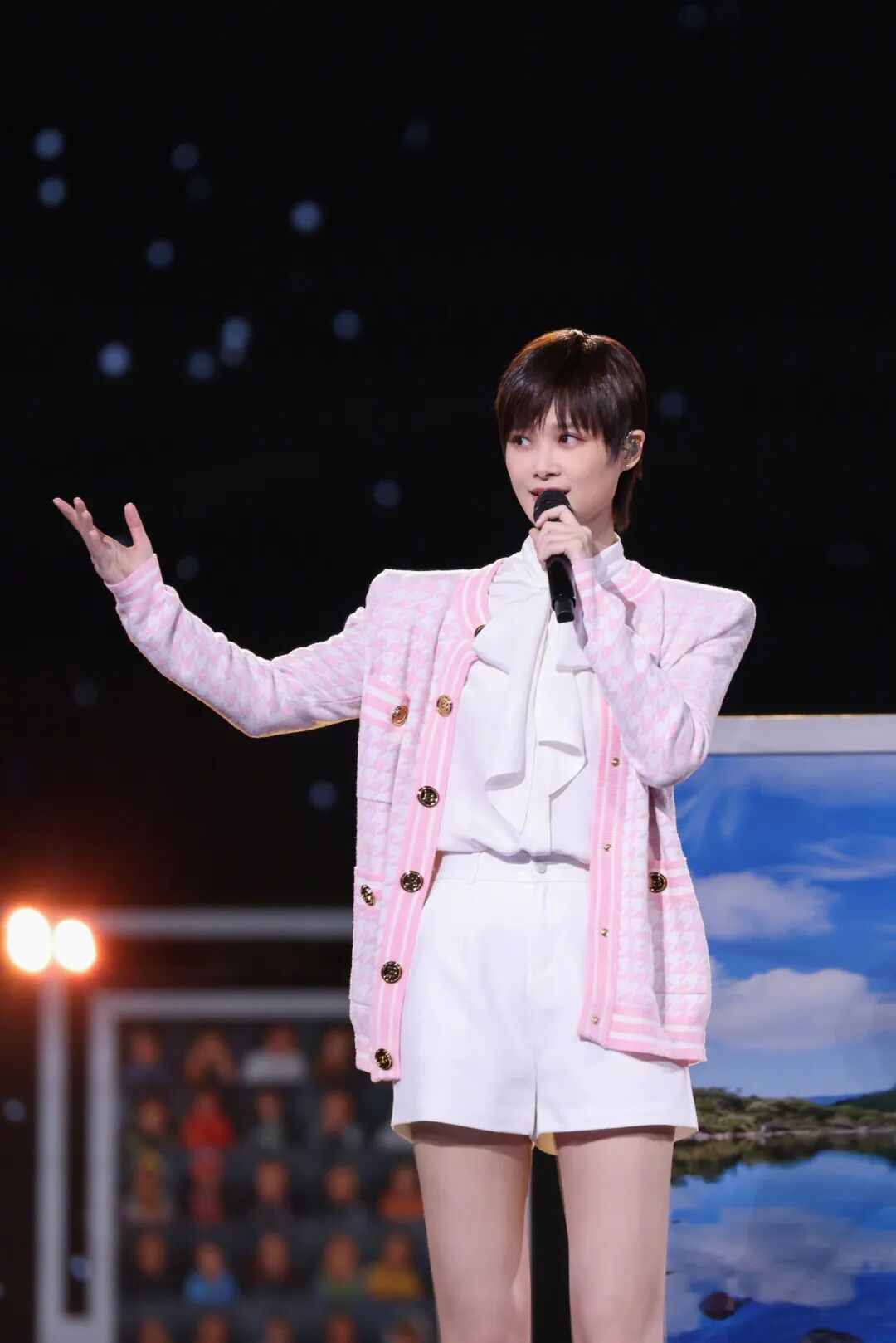 周笔畅参加这个节目也太适合了,第一期穿一身金色闪片的西装高定唱《夕阳醉了》,