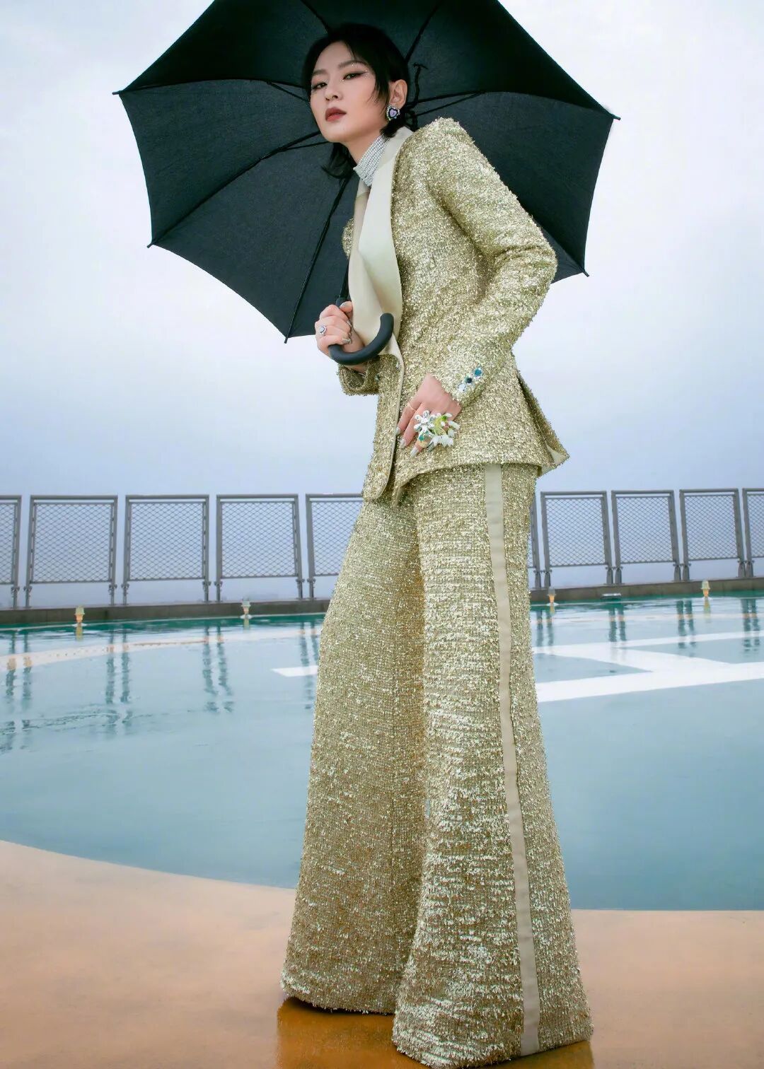 穿上各种花里胡哨的高订西装,她又是那个酷酷的Bibi Zhou。