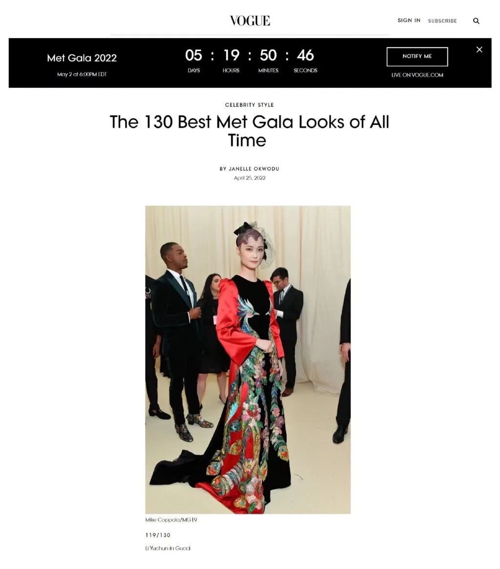 这套造型在前几天还被美版《VOGUE》评为史上最佳130个红毯造型。