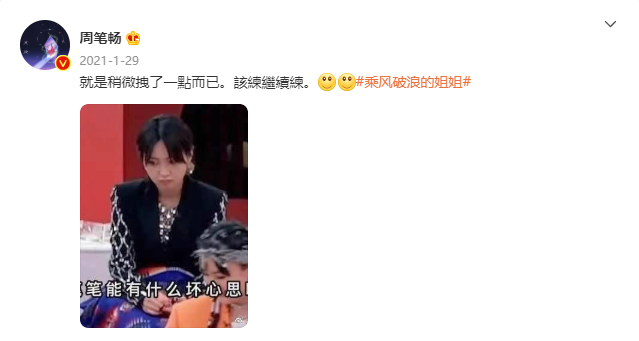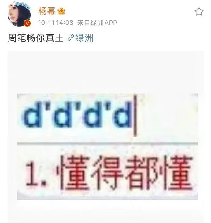 杨幂在微博开玩笑回应:周笔畅你真土!