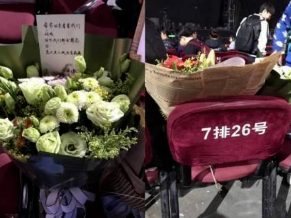7月26日,是周笔畅的生日,她用这个座位纪念一位已经在天堂的歌迷,座位上放满了鲜花,有周笔畅留下的,也有粉丝们带来的,这是心照不宣的默契和仪式感。