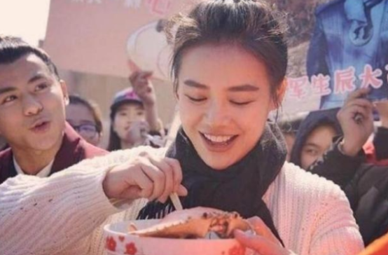 结果不久后就被拍到,在片场里,她对着碗里的螃蟹笑得可开心了。