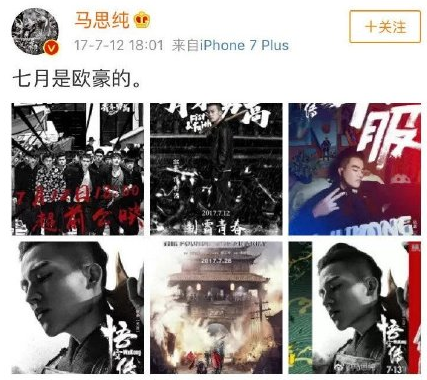后来马思纯因为《七月与安生》飞升影后,成名后也没忘了欧豪,整天在微博替自家男友宣传。