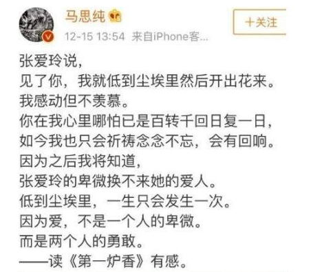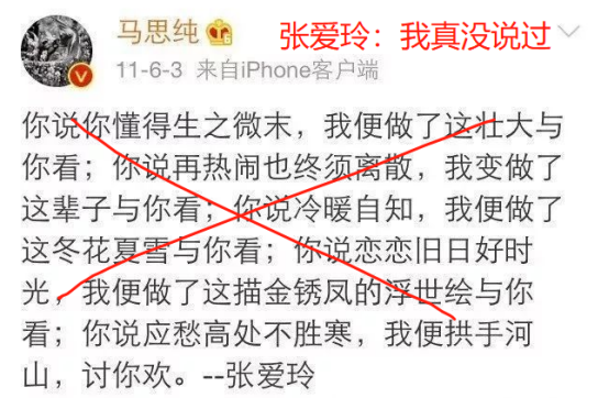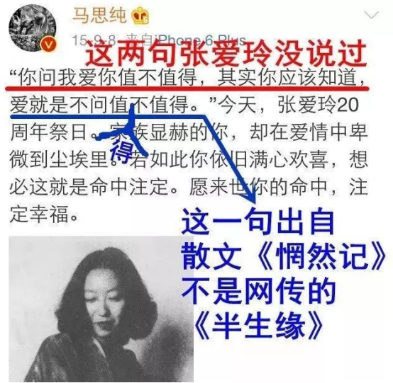 不仅如此,马思纯还多次分享假张爱玲语录。