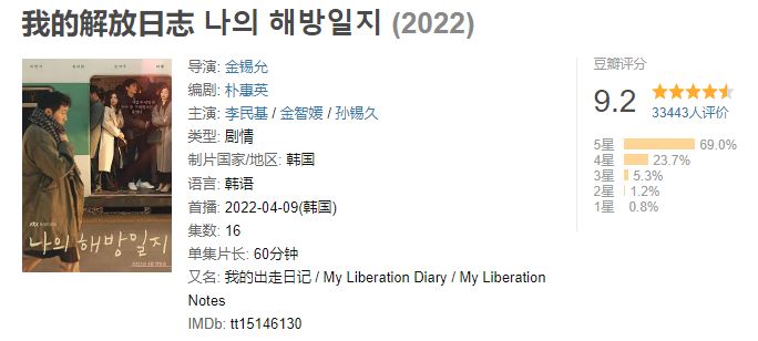 让《我的解放日志》登上韩剧话题榜首,豆瓣评分9.2分。