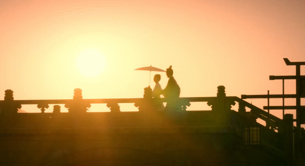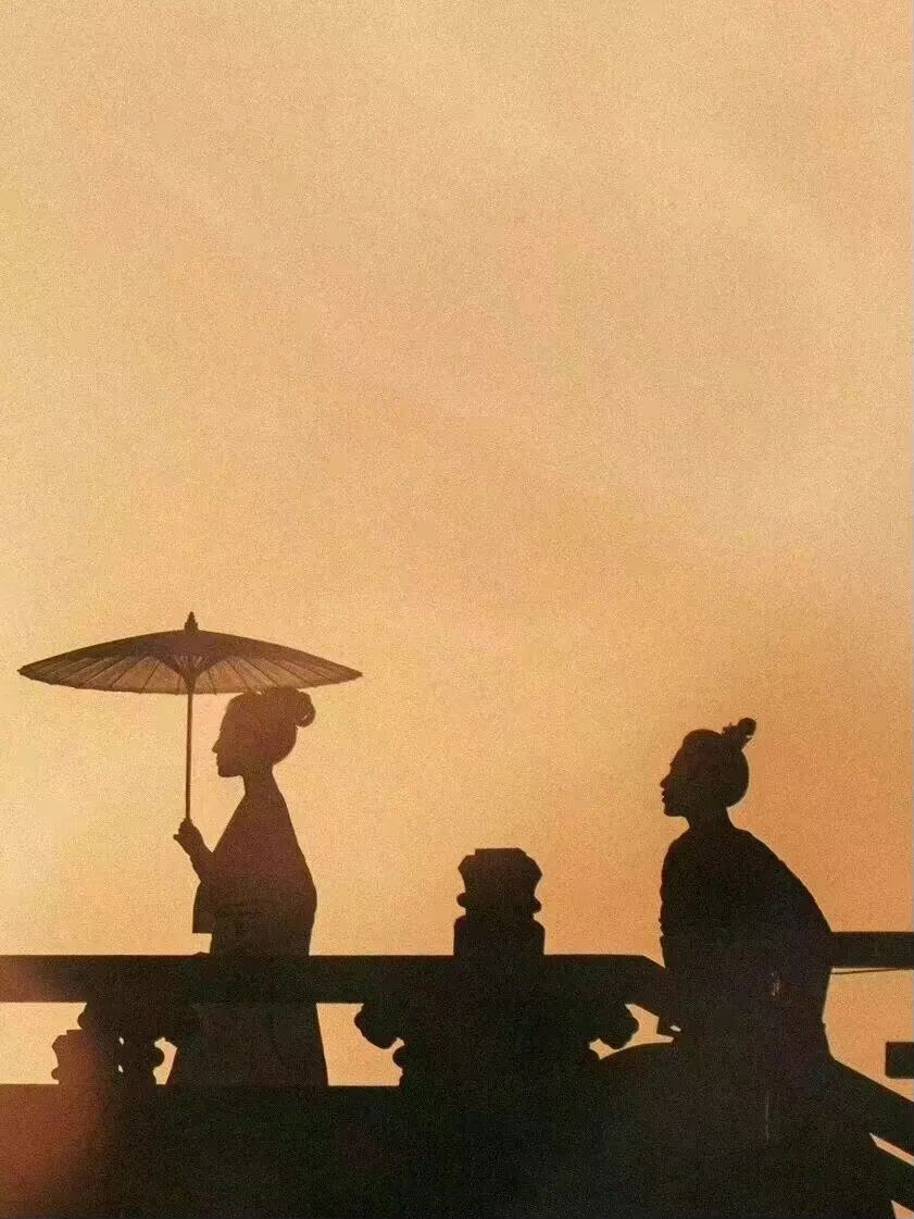 两个人站在一起,仿佛真是生在古代的人一样,就连剪影下头颅的弧度都是如此般配。