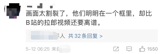 “画面太割裂了,他们明明在一个框里,却比B站的拉郎视频还要离谱”
