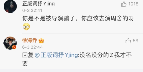 有人问怎么不演周舍,他:“没名没分的事咱不干啊”。