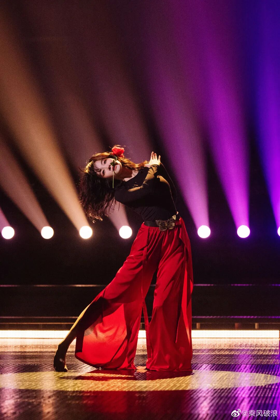 初亮相舞台上,她一身红裙,嘴里叼着玫瑰亮相,像一个妖娆的弗朗明哥女郎。