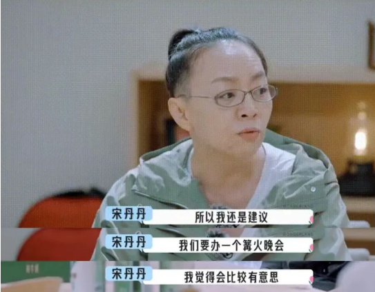 为了缓解大家的陌生,宋丹丹提议举办篝火晚会。