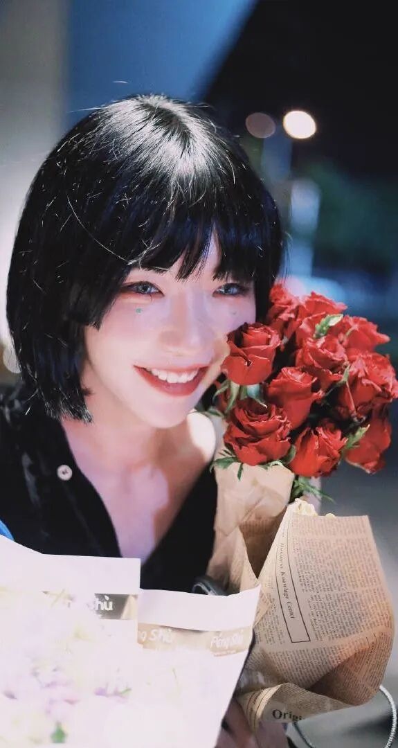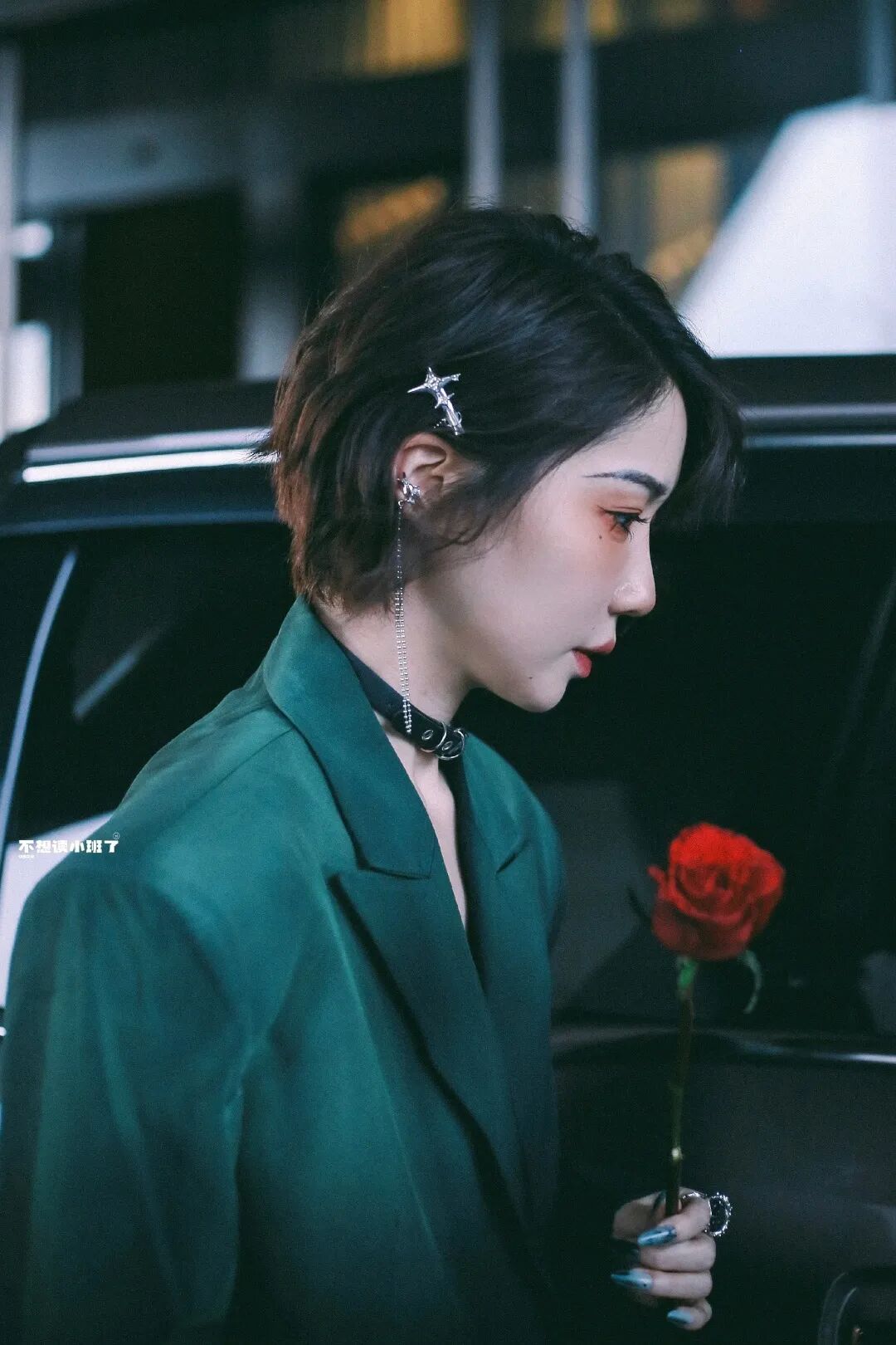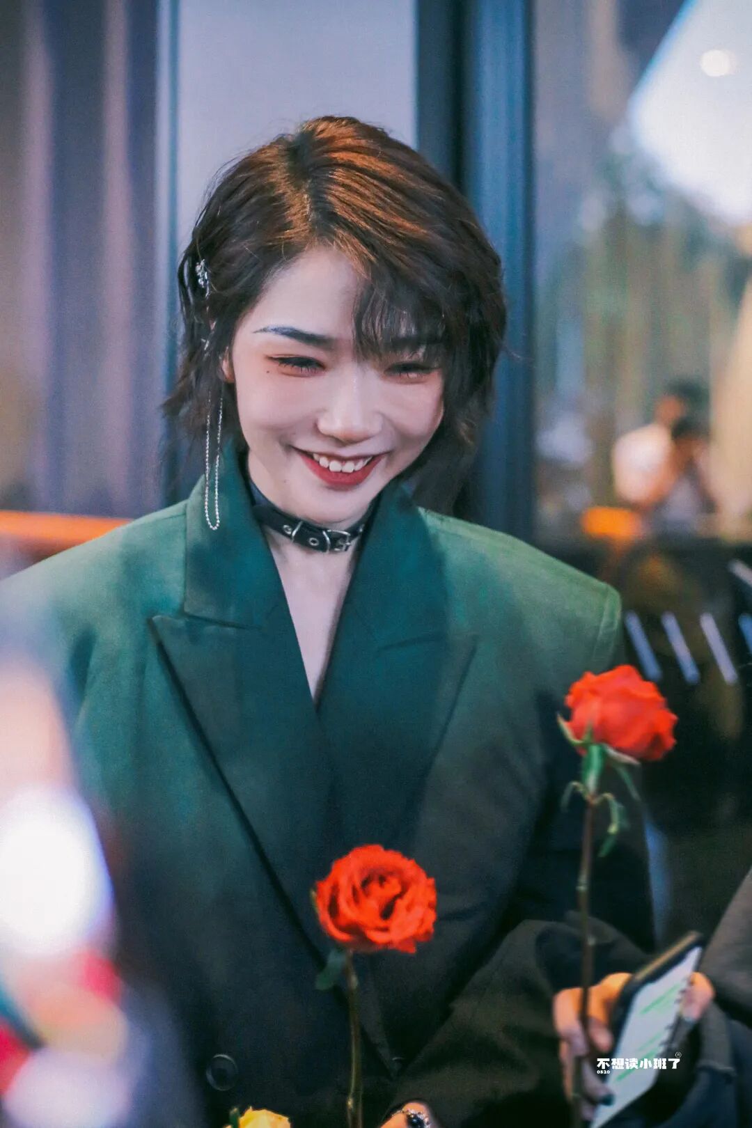 路透刚出的时候,她一身绿色西装,手拿玫瑰,一笑嫣然,让人一眼惊艳~
