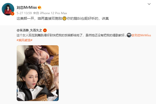 和薛凯琪组成的#热恋琪CP,舞台上两人相互缠绵贡献名场面,生活中两人也成为了好朋友~