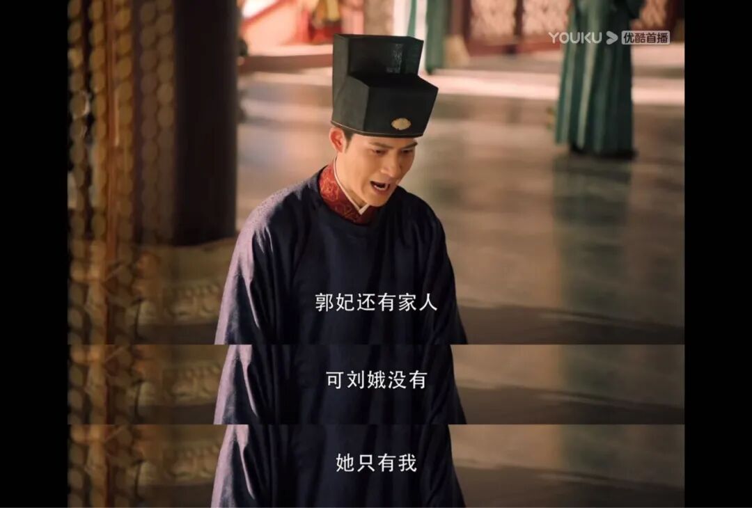 为了女主甘愿抛弃发妻,说出比琼瑶还要琼瑶的台词:郭妃还有家人,但是刘娥没有,她只有我。