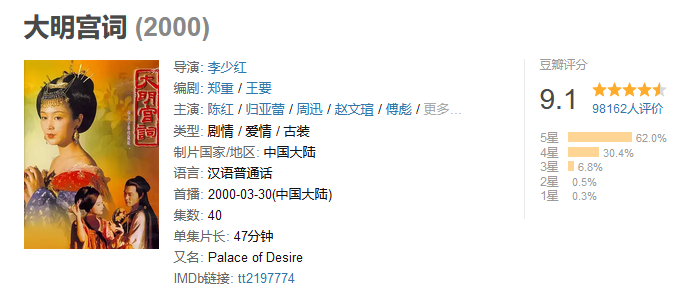 同比李少红导演以前的作品《大明宫词》,评分更是呈断崖式暴跌。