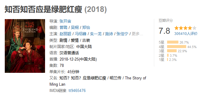 论人设的饱满和剧情的连贯,更是没办法跟《知否》比了,毕竟《知否》当年可是部小爆剧呢。