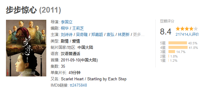 《步步惊心》的主演刘诗诗的演技也算不上好吧,照样拿下8.4的高分。
