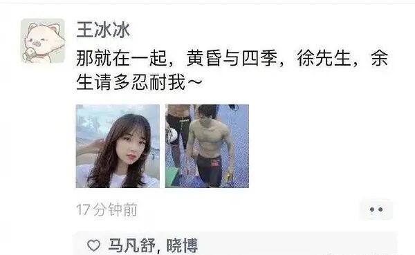 网传朋友圈官宣,马凡舒还点了赞(咱们没有冰冰朋友圈咱们也不知道