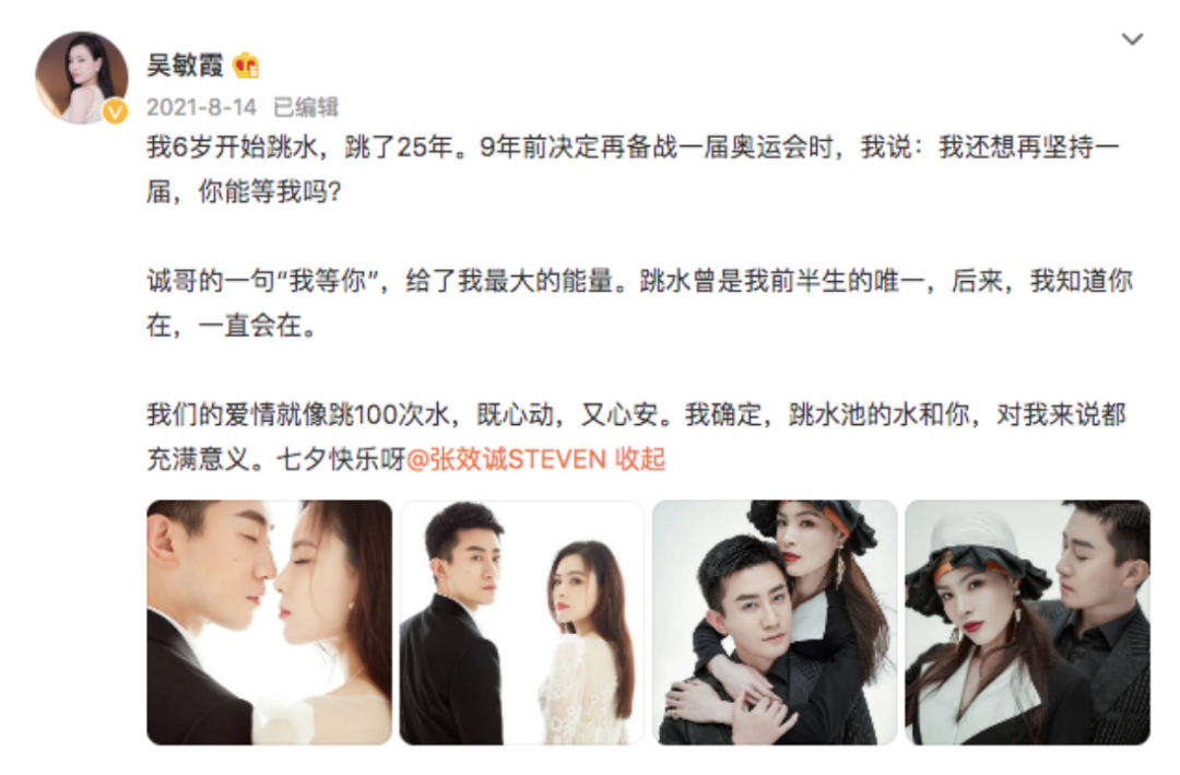 但张效诚不想影响吴敏霞备战2012年伦敦奥运会的训练和比赛,吴敏霞也不想让张效诚面对外界对女子跳水队多嫁豪门所带来的舆论和压力,于是他们两人并没有选择公开。