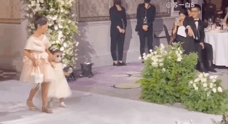 作为花童,穿着白色公主裙的小女儿Anah跌跌撞撞给爸妈开路。(右边的小小只就是Anah,就是说咱们能云养的娃又多了一个