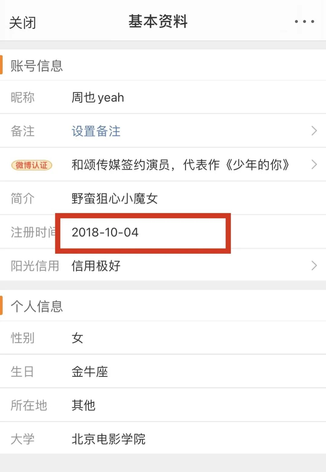 现在的这个微博是18年拍了电影电视剧正式出道之后才开通的。