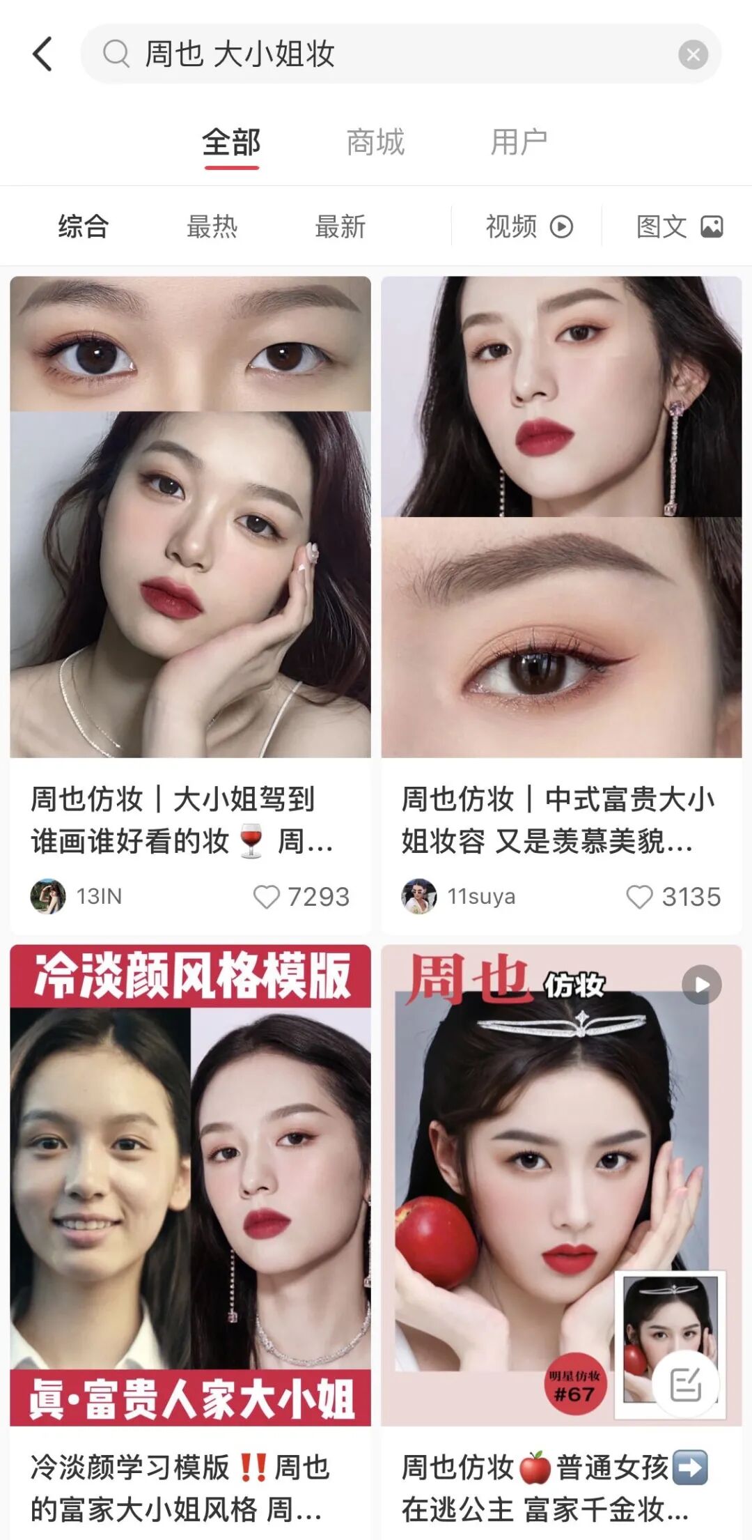 因为独一份的富家女气质,网上甚至兴起了 #周也 富家女仿妆 的热潮。