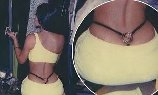 “一根细长的材料隐藏在臀部裂缝,两根细长的材料环绕在腰部中间。”