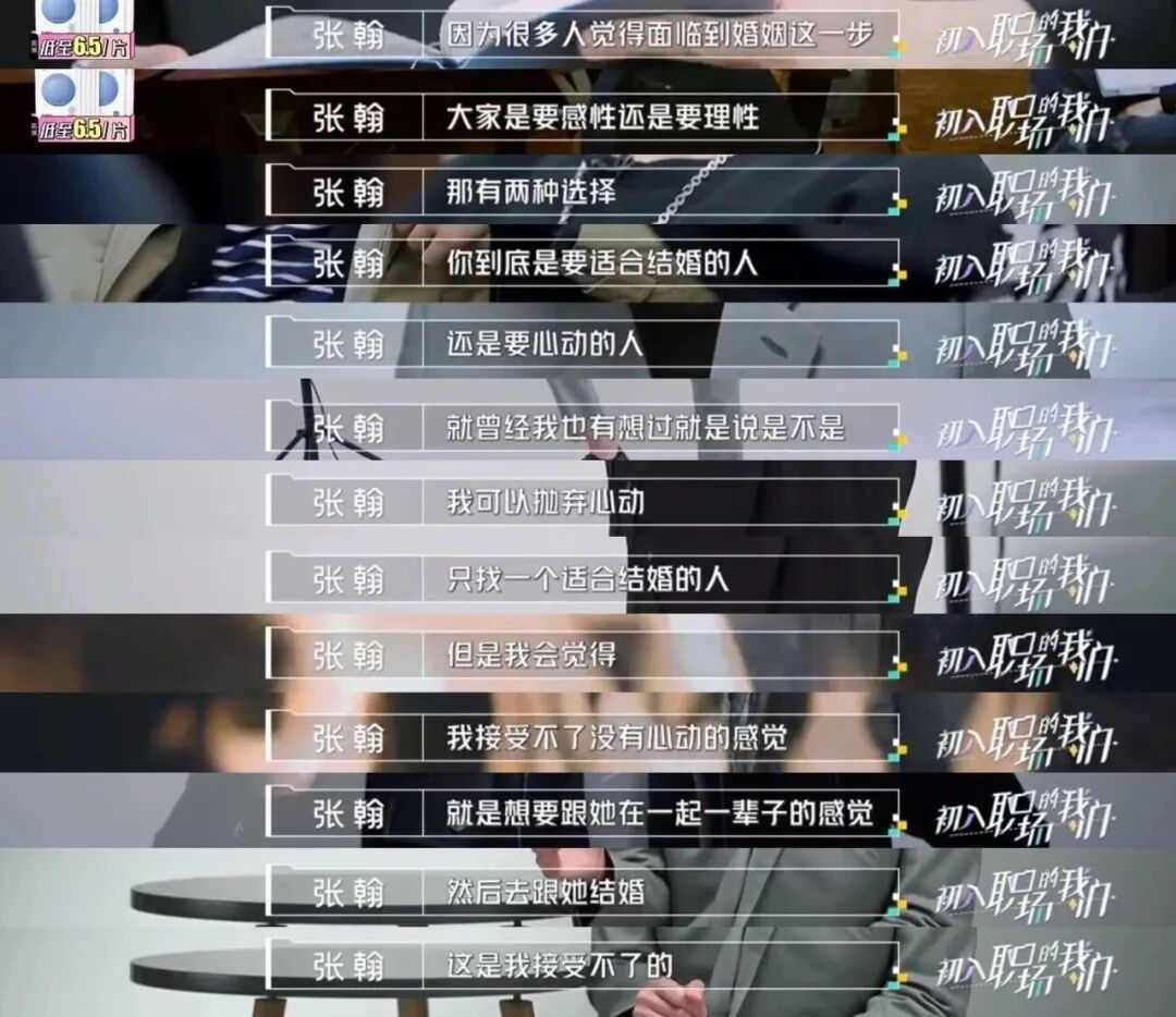 前几天,张翰在《初入职场的我们》第一期里聊自己的工作以及对婚姻的看法。回忆起前任时,他感叹道: