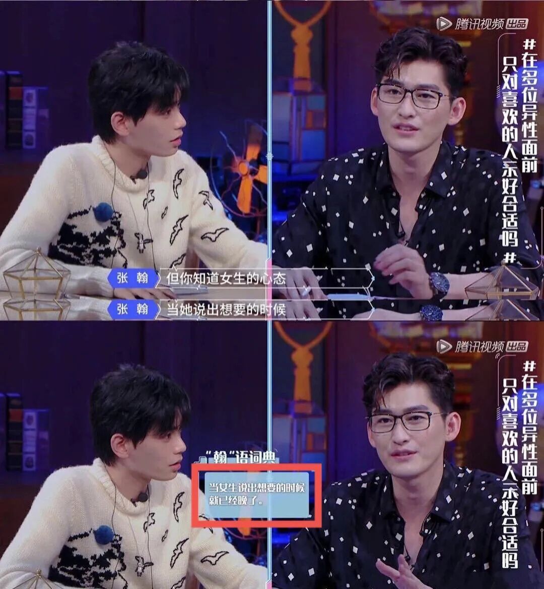 由于张翰频繁念叨女朋友,同录节目的其他嘉宾已经能够在他说出下一句时快速抢话:给你的爽。