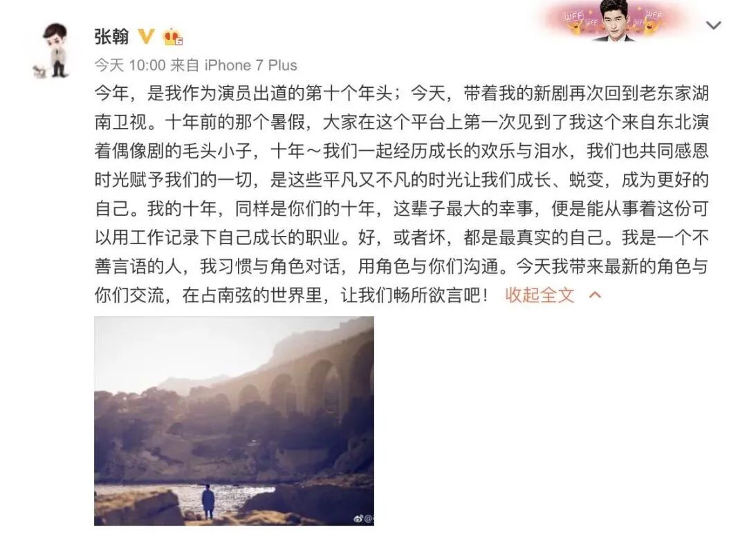 从“慕容云海”到“占南弦”,张翰出道刚好十年。