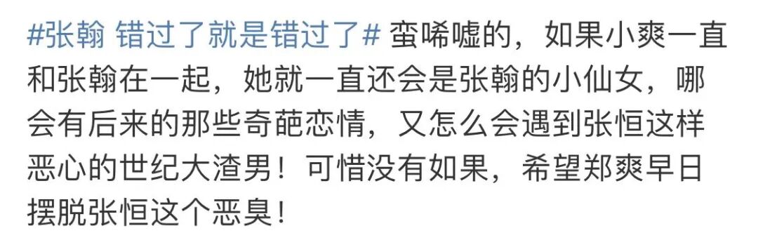 众所周知,和爽分手后的每一个男人,无一例外都会被网暴(小爽这么单纯,那错的只能是张翰、胡彦斌、张恒咯~