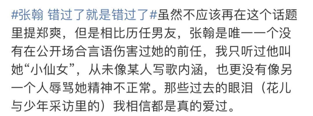 由始至终,张翰非但没说过爽的半句不好,还让大家不要去伤害郑爽。