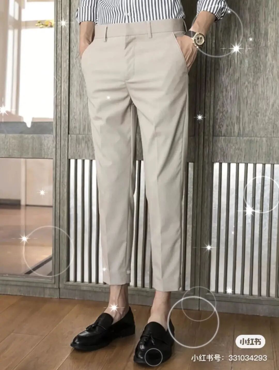 刚好露出脚踝的长度是最适合的:不压个子也显得精神。
