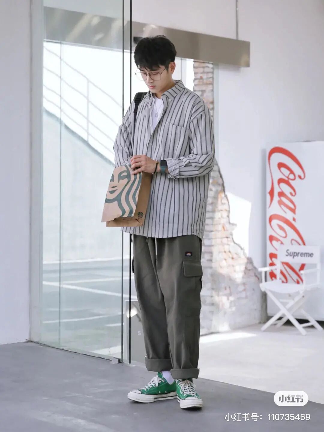 答应我,绿白色条纹打底+白衬衫外套,这一套直接copy好吗?