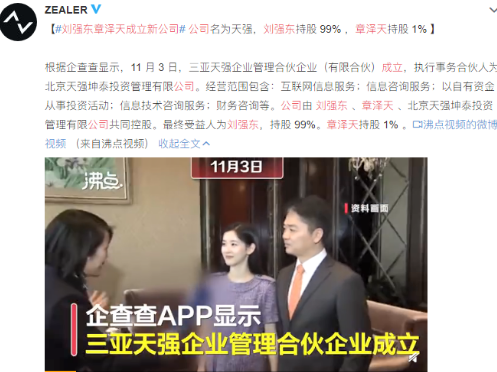 后来刘强东和章泽天合伙开了一家公司,名叫“天强”!
