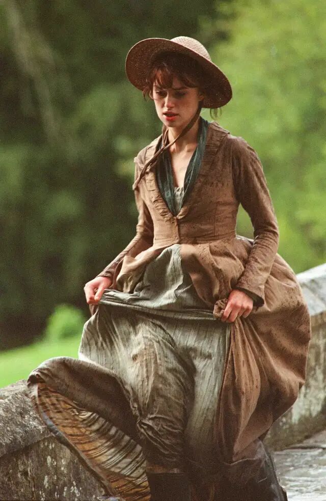 在《傲慢与偏见》里,她对上层阶级的傲慢和周围人的浮躁视而不见。看见奈特莉在雨中昂着修长的脖颈大步朝前走的样子,对她只有欣赏。