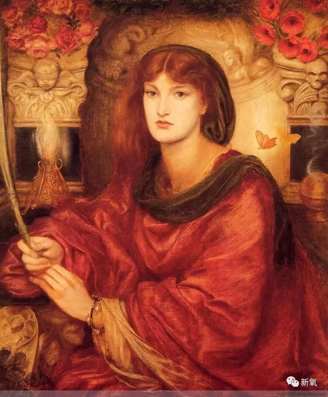 罗塞蒂笔下的美人眼神贵气,肢体语言骄傲又懒散。