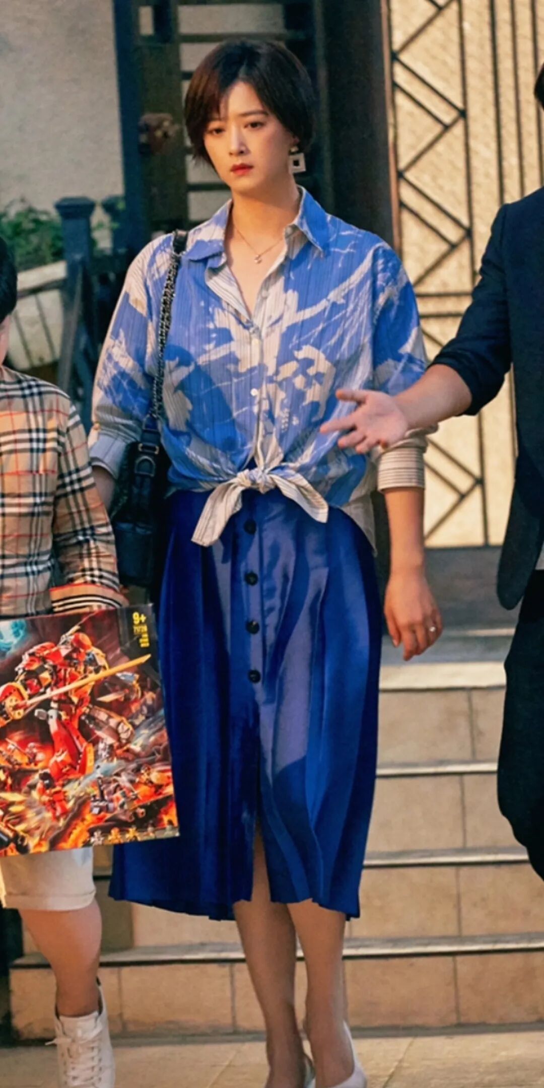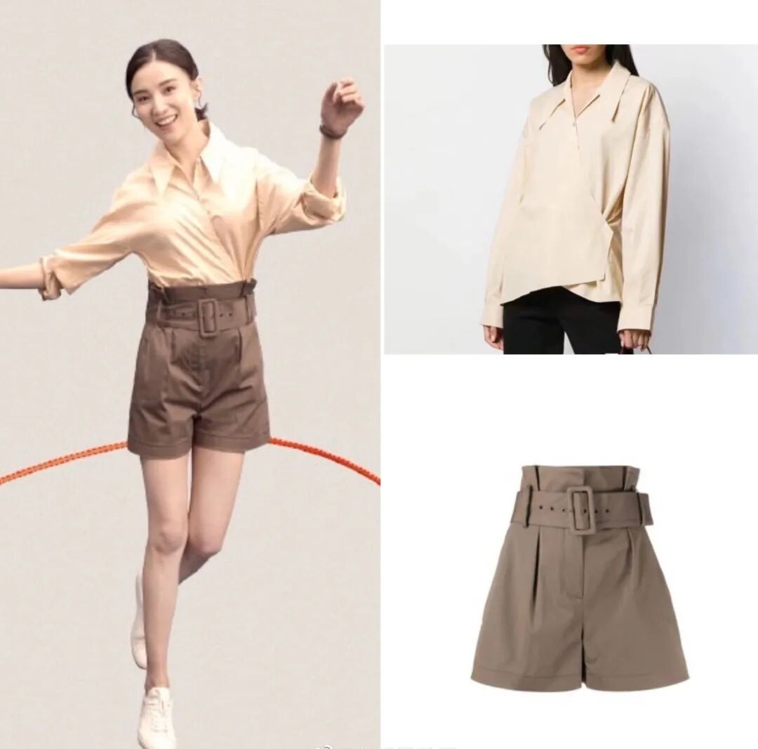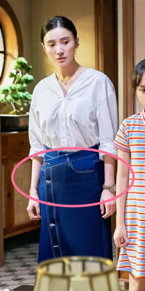 宋佳剧里这件虽然是短裤,但腰部腰带以及褶皱设计,大家可和她几条光滑的裙子对比看看。
