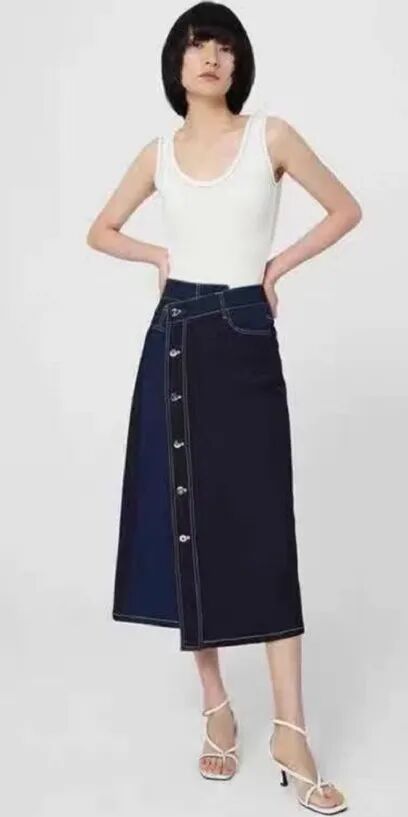 A字裙褶子从腰部散开,正好遮住太宽的胯与臀部。