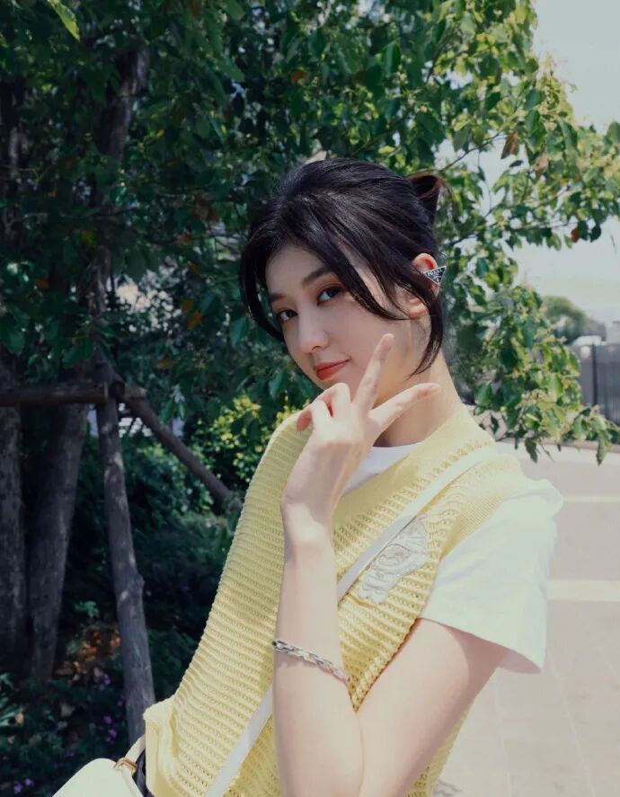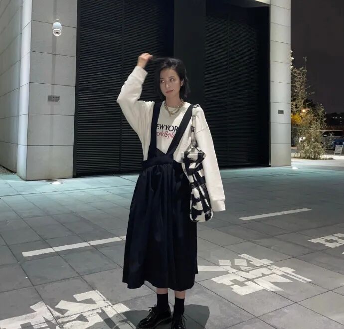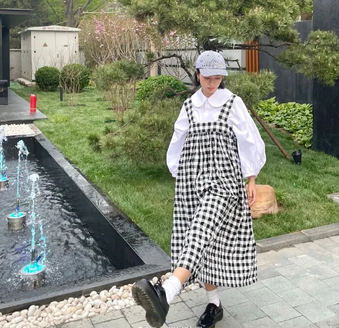 98年的小姑娘辛叡恩,私服还蛮会搭配的: