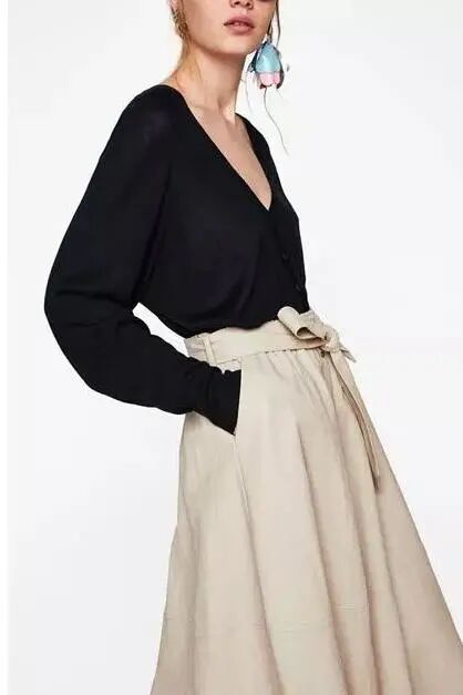 建议尝试A字裙,裙摆向两边打开,人为制造有腰的错觉。