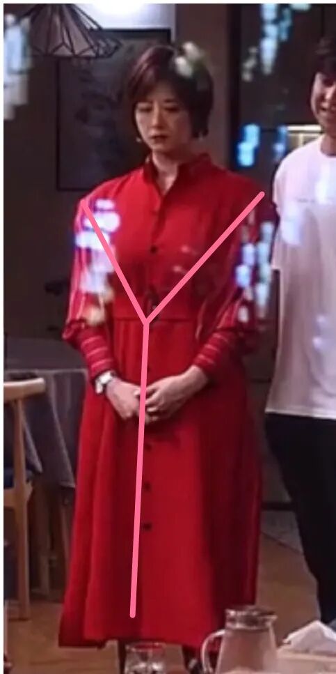 △蒋欣剧里穿的这条the keij,扣子扣得太严实,甚至她加了腰带穿也不行,肩膀实在太显宽。