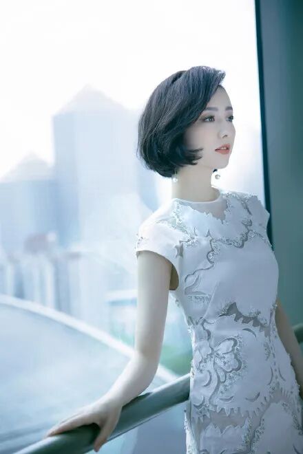 精修里的佟丽娅在墙边或窗边岁月静好,整体氛围很到位。