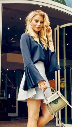 这条Lily的包臀半裙,就有点显小肚子吧?这件上衣还是上面我们说过有点容易让人肩膀宽的款式,整个搭配一起略微显胖。