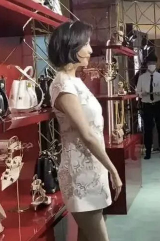 侧面看,美人像是参加活动累了,出现了脖颈前倾的问题。